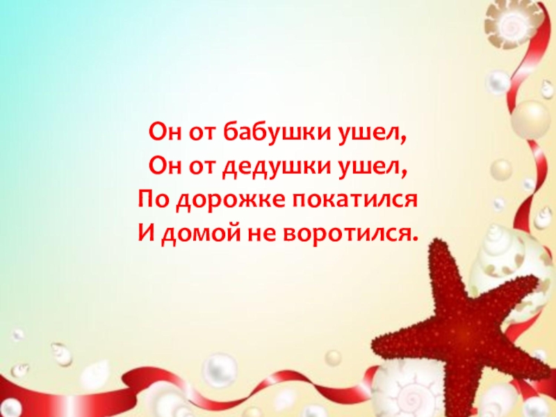 Он от бабушки ушел,Он от дедушки ушел,По дорожке покатилсяИ домой не воротился.
