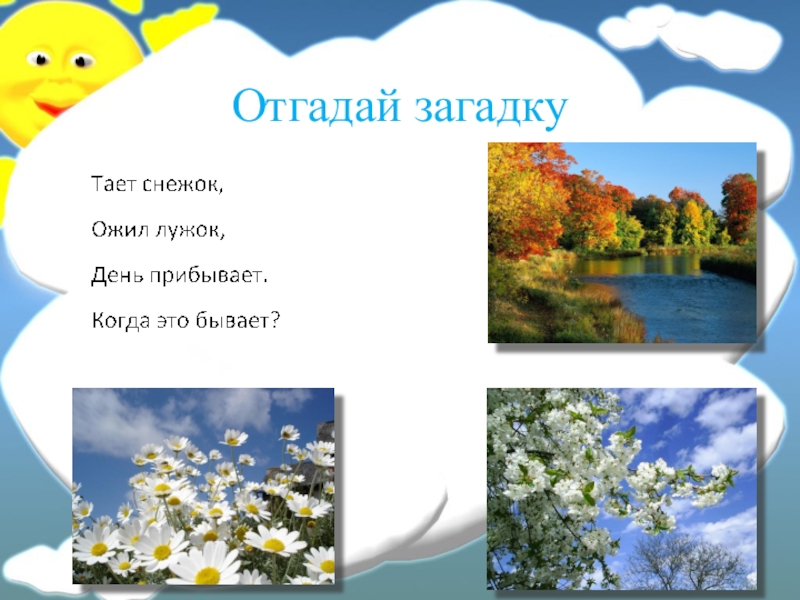 Отгадай загадкуСнег на полях, Лед на реках,Вьюга гуляет.Когда это бывает?