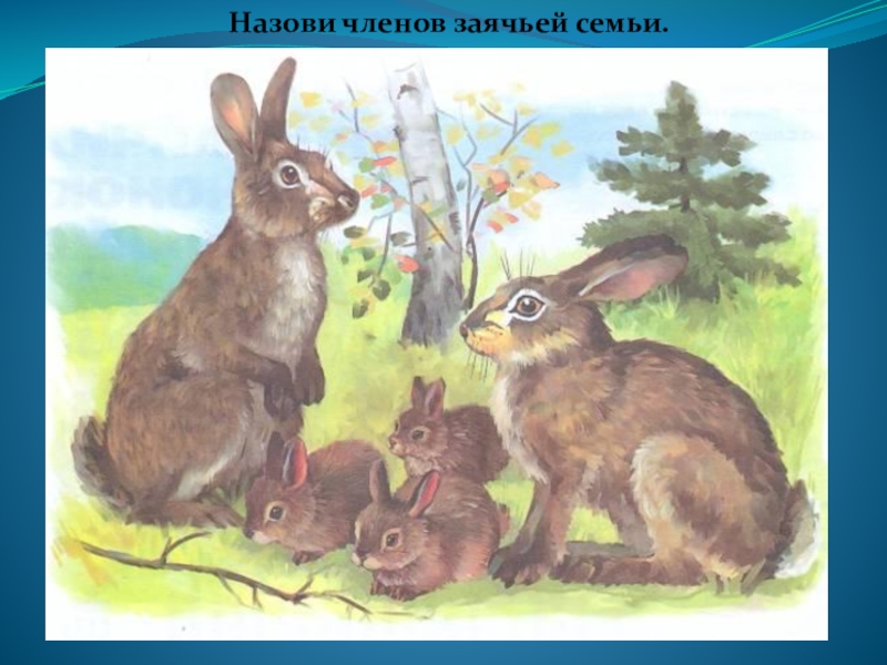Слайд 9Назови членов заячьей семьи.