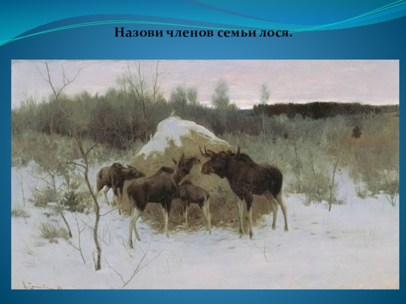 Слайд 14Назови членов семьи лося.