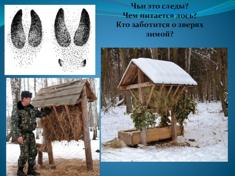 Чьи это следы?Чем питается лось?Кто заботится о зверях зимой?