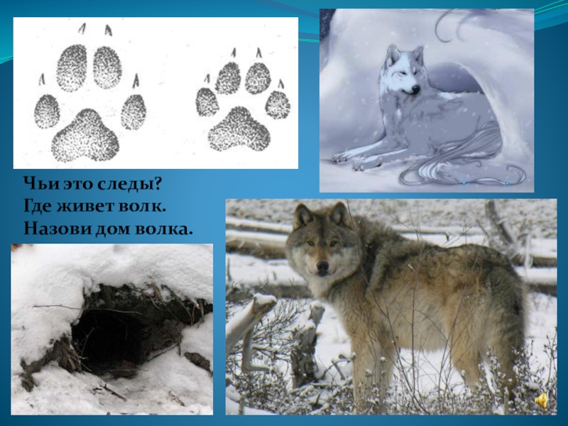 Чьи это следы?Где живет волк.Назови дом волка.