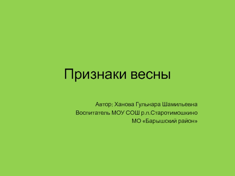 Признаки весныАвтор: Ханова Гульнара ШамильевнаВоспитатель МОУ СОШ р.п.СтаротимошкиноМО «Барышский район»