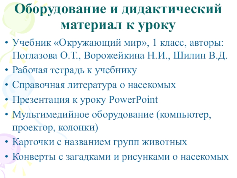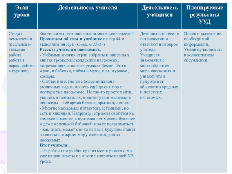 урока: Насекомые. Наши маленькие соседи.