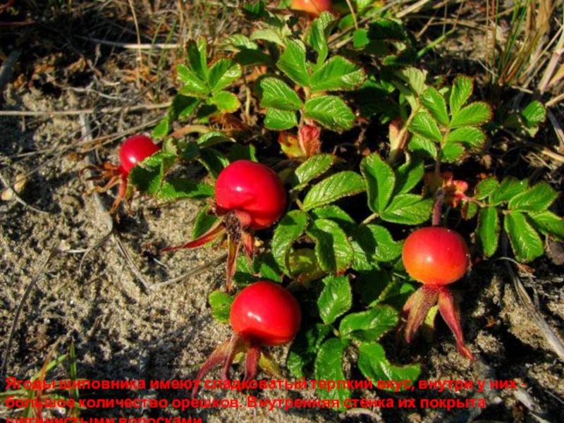жёлтыми блестящими шаровидными или яйцевидными ягодами, внутри которых находится одно вытянутое семечко. На вкус облепиха кислая и имеет особый запах.