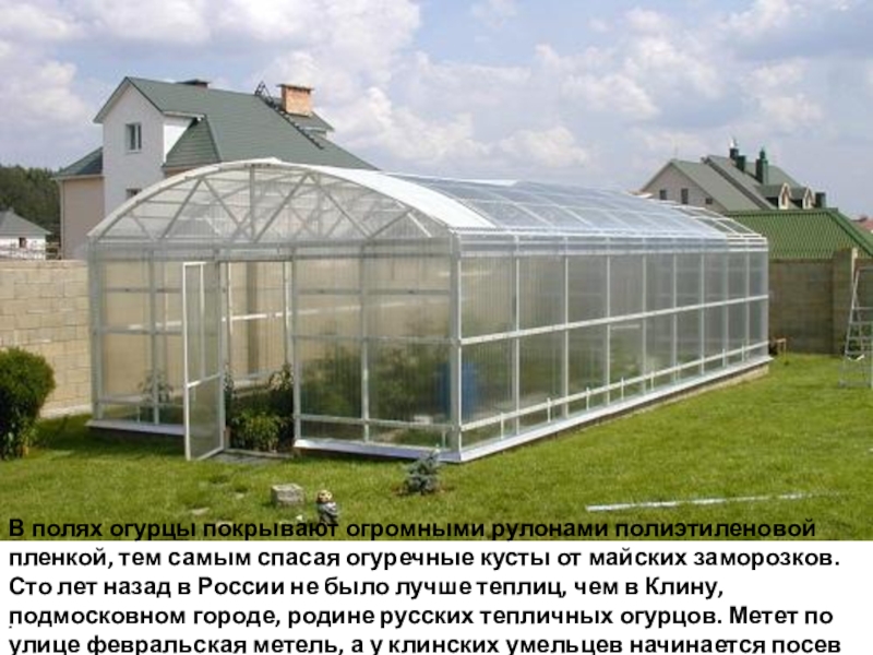 огуречные кусты от майских заморозков. Сто лет назад в России не было лучше теплиц, чем в Клину, подмосковном городе, родине русских тепличных огурцов. Метет по улице февральская метель, а у клинских умельцев начинается посев огурцов.