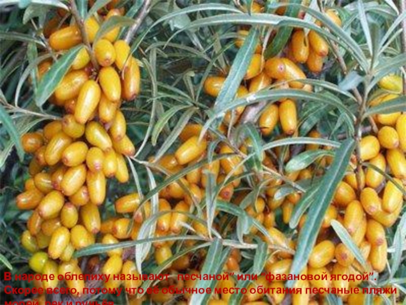 Слайд 147В народе облепиху называют песчаной” или “фазановой ягодой”. Скорее всего,