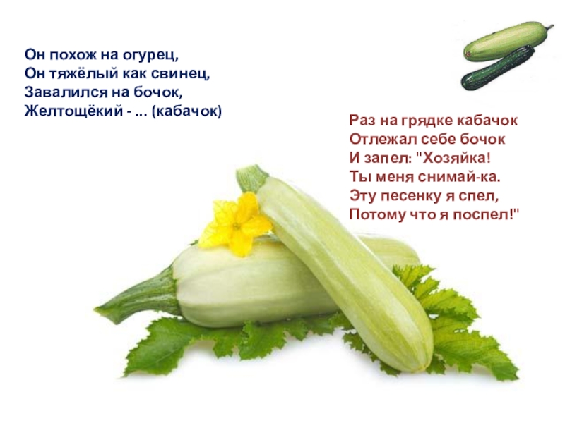 Огурец растет на грядке, Прикрывается листом,