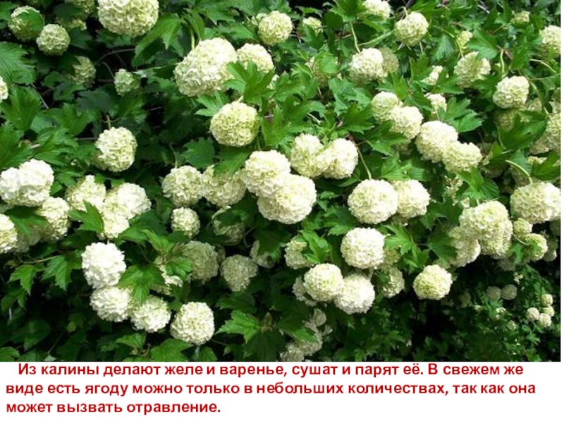 Слайд 144 Из калины делают желе и варенье, сушат и парят её.