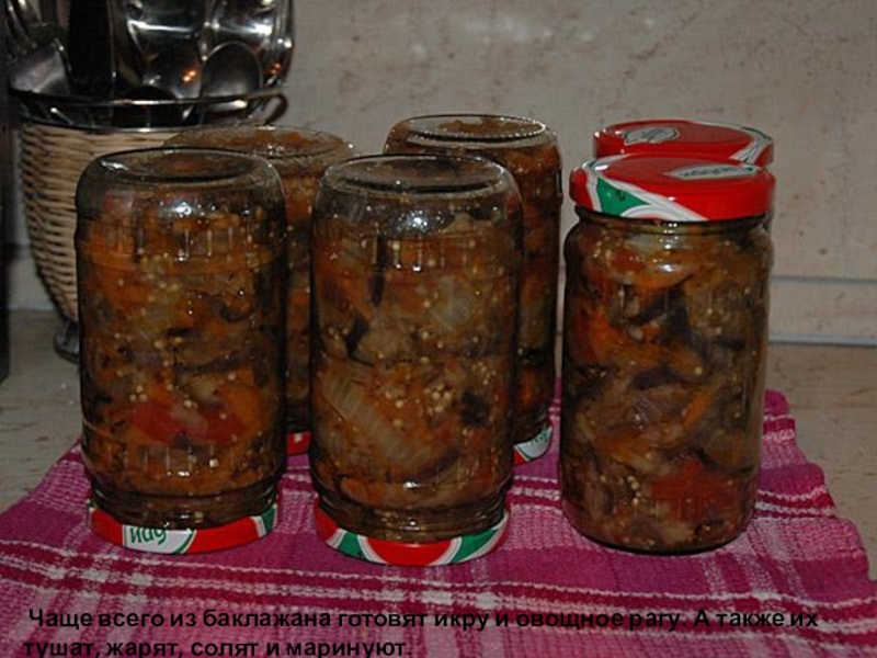 Слайд 20 Чаще всего из баклажана готовят икру и овощное рагу. А также