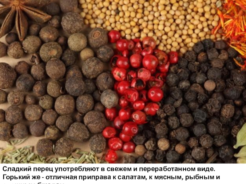 Слайд 13 Помидоры едят свежими, в виде приправ, солёными и маринованными. Горячие