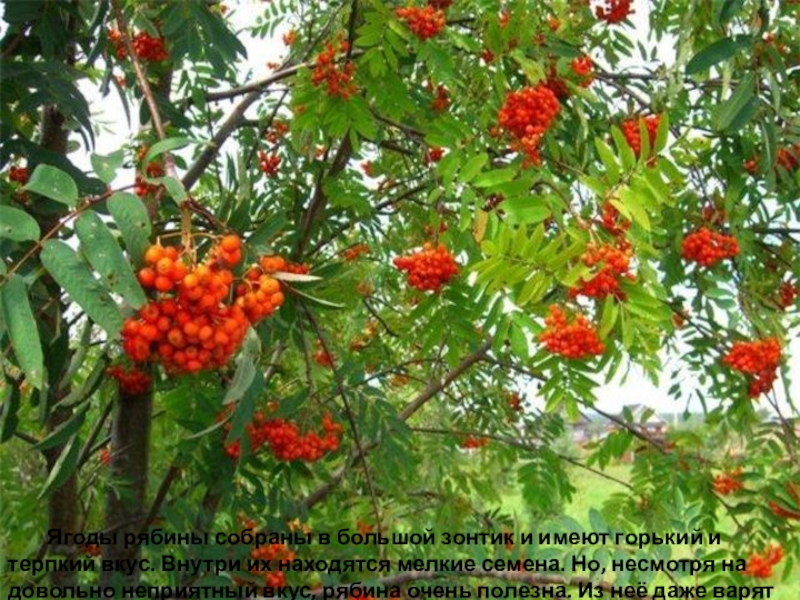 Слайд 140 Ягоды рябины собраны в большой зонтик и имеют горький и