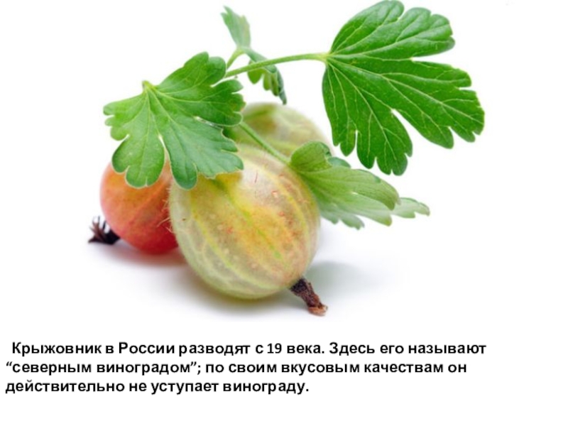 Слайд 150 Крыжовник в России разводят с 19 века. Здесь его называют