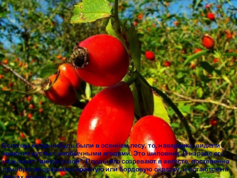 Слайд 142 Почти в каждом осеннем лесу можно встретить кустарник, на котором висят