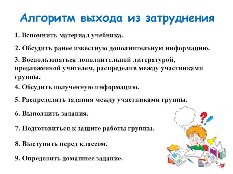 3. Воспользоваться дополнительной литературой, предложенной учителем, распределив между участниками группы.