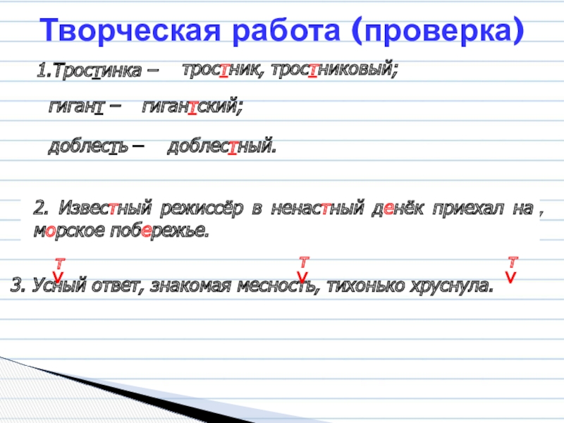 3) Запишите образованные слова. Подчеркните непроизносимые согласные одной чертой. Проверьте.