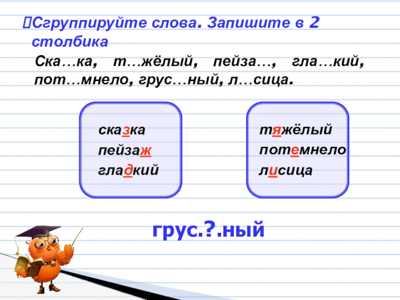 3) Если это возможно, подберите проверочные слова, вставьте буквы.