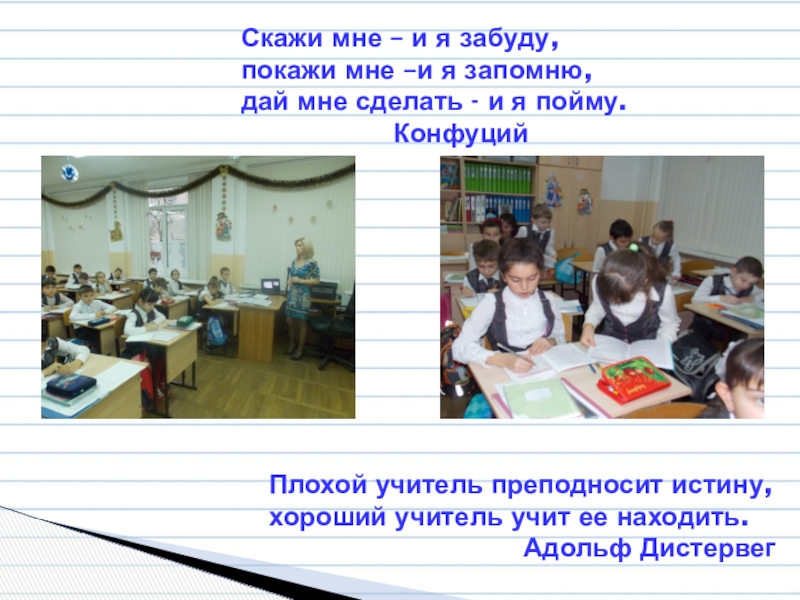 Плохой учитель преподносит истину, хороший учитель учит ее находить.