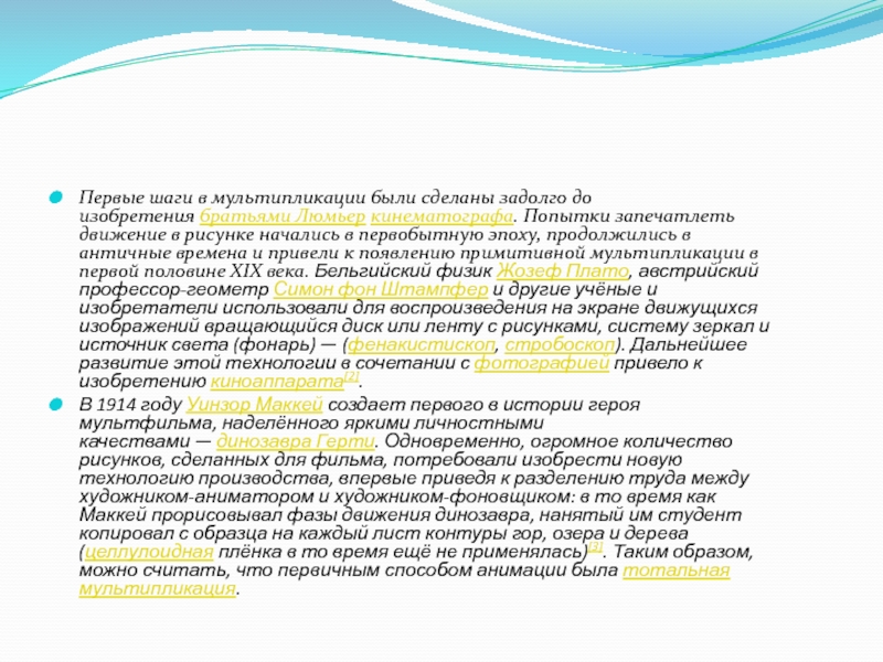 Слайд 3Первые шаги в мультипликации были сделаны задолго до изобретения братьями Люмьер кинематографа. Попытки