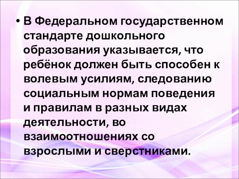 Слайд 5В Федеральном государственном стандарте дошкольного образования указывается, что ребёнок должен быть