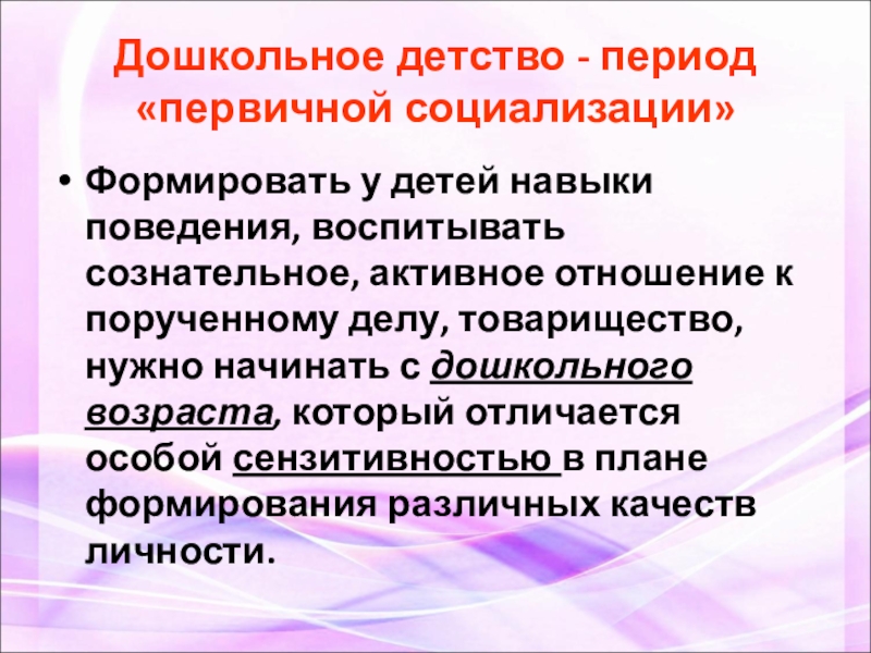 Слайд 6Дошкольное детство - период «первичной социализации»