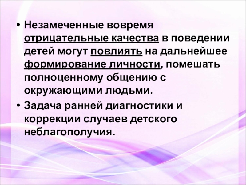Слайд 8Незамеченные вовремя отрицательные качества в поведении детей могут повлиять на дальнейшее
