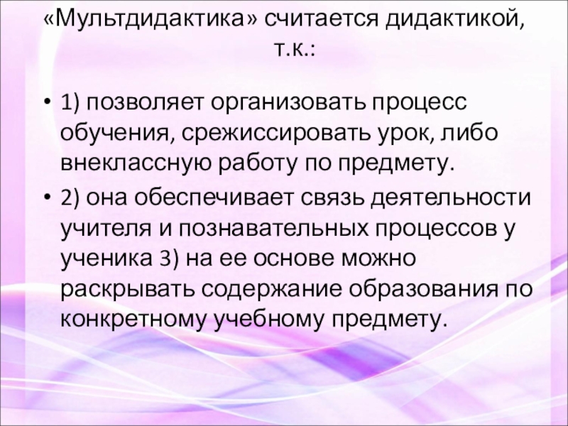 Слайд 13«Мультдидактика» считается дидактикой, т.к.: