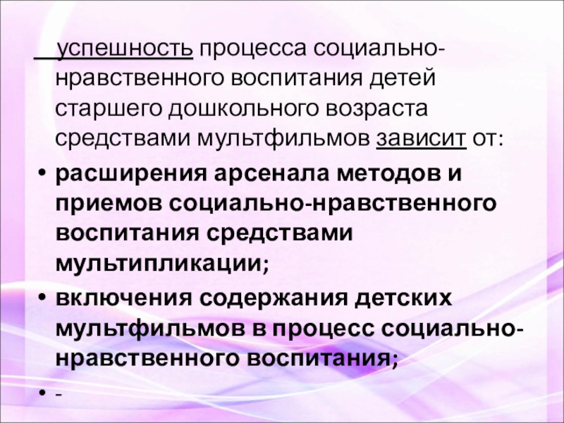 включения содержания детских мультфильмов в процесс социально-нравственного воспитания;