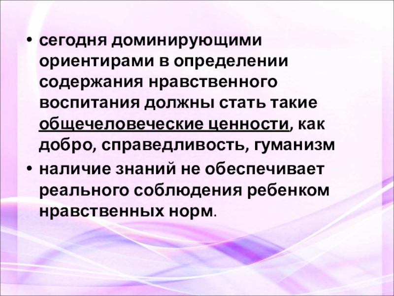 Слайд 3сегодня доминирующими ориентирами в определении содержания нравственного воспитания должны стать такие
