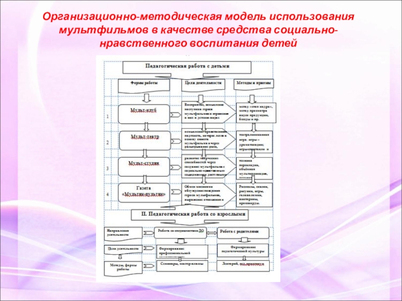 Организационно-методическая модель использования мультфильмов в качестве средства социально-нравственного воспитания детей
