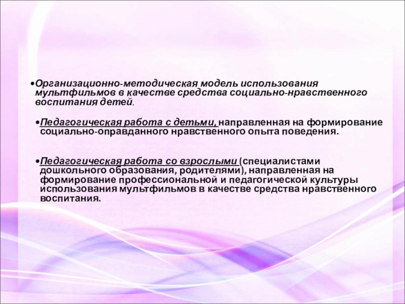технологий работы с мультфильмом в целях реализации их максимального воспитательного эффекта и социально-нравственного развития детей;