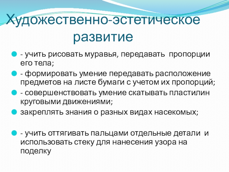 - учить рисовать муравья, передавать пропорции его тела;