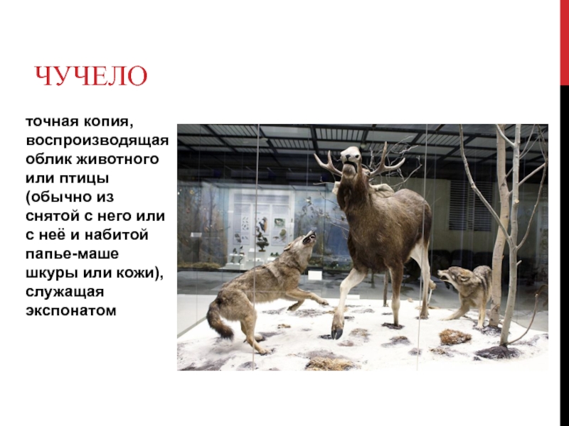 него или с неё и набитой папье-маше шкуры или кожи), служащая экспонатом