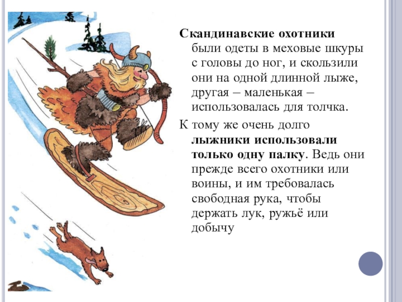 Скандинавские охотники были одеты в меховые шкуры с головы до ног, и скользили они на одной длинной