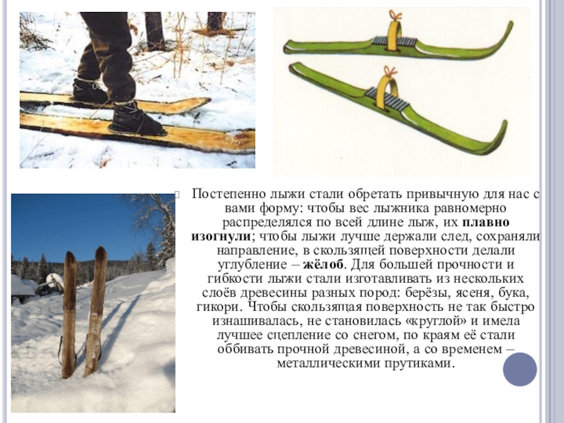 Слайд 6Постепенно лыжи стали обретать привычную для нас с вами форму: чтобы