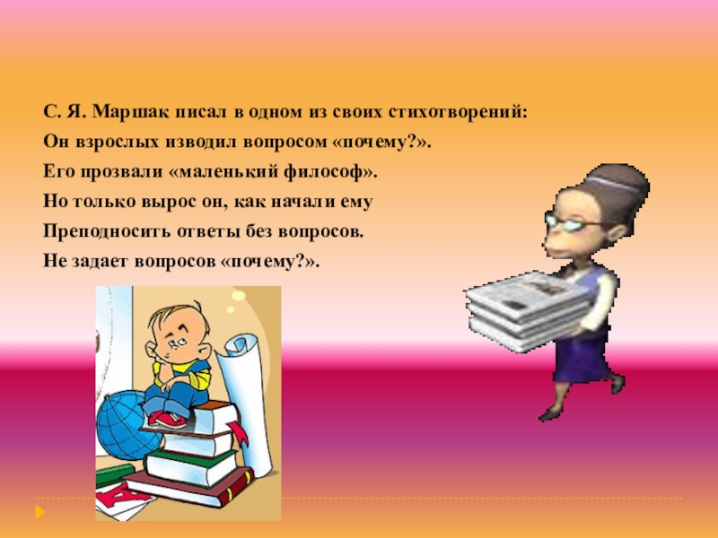 Это сайт презентаций, где можно хранить и обмениваться своими презентациями, докладами, проектами, шаблонами в формате PowerPoint с другими пользователями. Мы помогаем школьникам, студентам, учителям, преподавателям хранить и обмениваться учебными материалами.