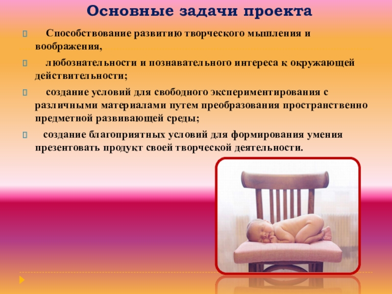 создание условий для свободного экспериментирования с различными материалами путем преобразования пространственно предметной развивающей среды;