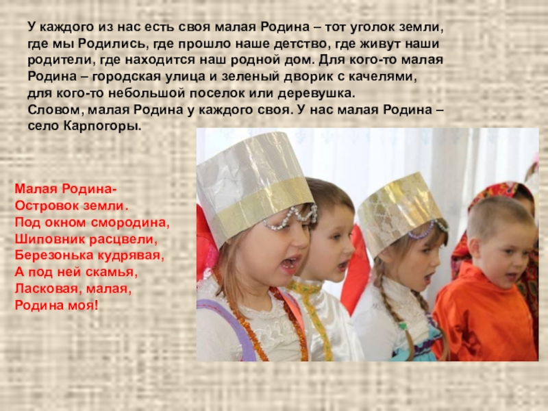 воспитывать патриотические чувства, любовь к родному краю, к его традициям и обычаям.