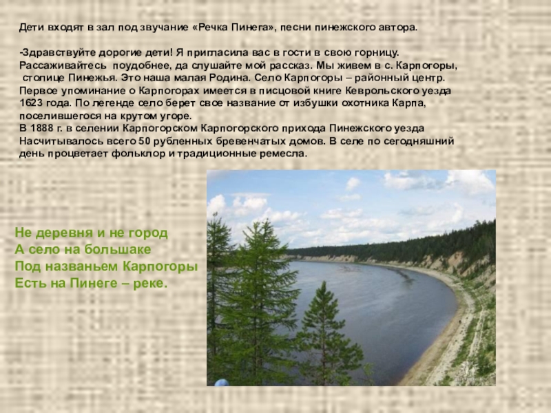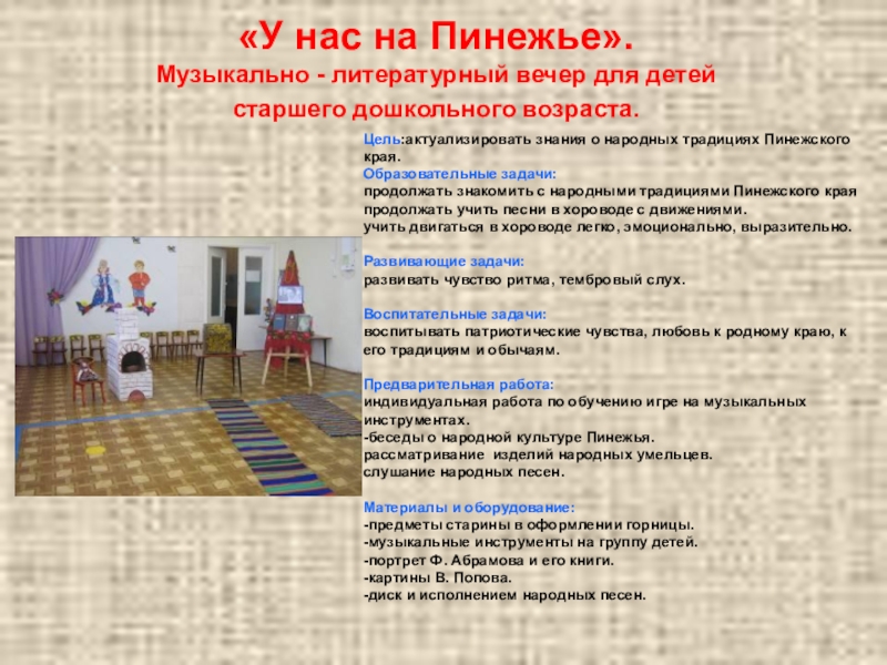 Цель:актуализировать знания о народных традициях Пинежского края.