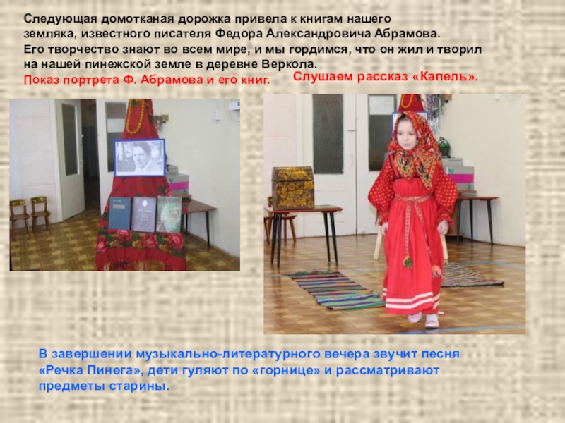 «Речка Пинега», дети гуляют по «горнице» и рассматривают