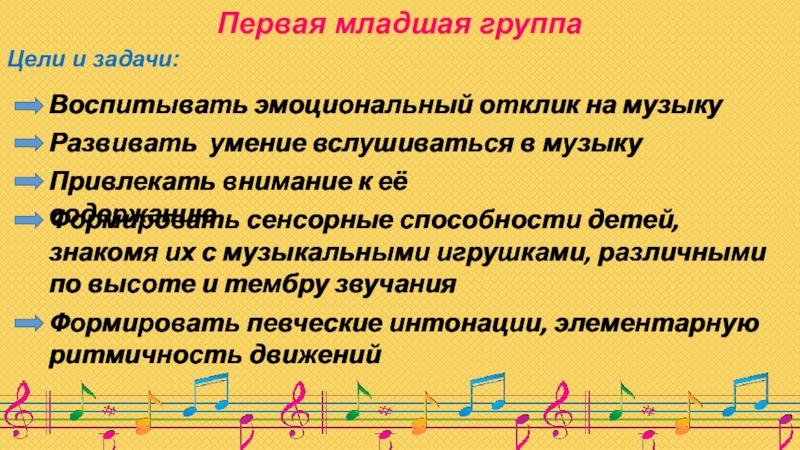 Формировать сенсорные способности детей, знакомя их с музыкальными игрушками, различными по высоте и тембру звучания