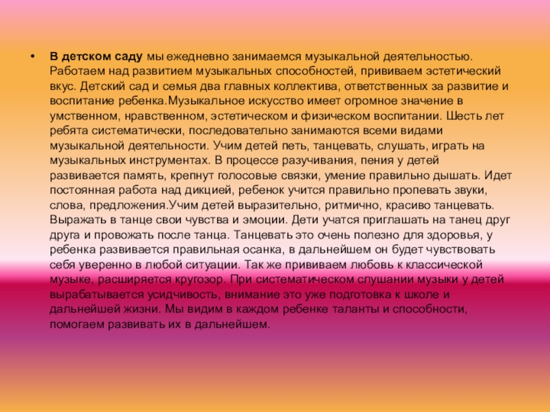 Музыкальное воспитание в детском саду