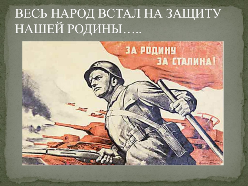 Слайд 5ВЕСЬ НАРОД ВСТАЛ НА ЗАЩИТУ НАШЕЙ РОДИНЫ…..