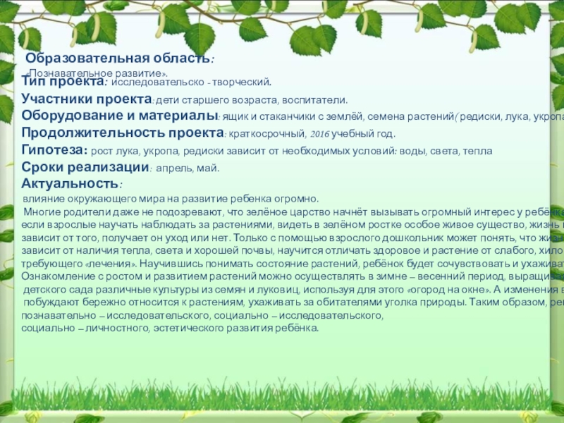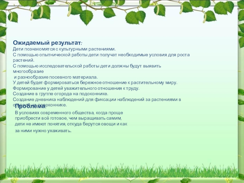 В условиях современного общества, когда проще приобрести всё готовое, чем выращивать самим, дети не имеют понятия, откуда берутся овощи и как за ними нужно ухаживать.