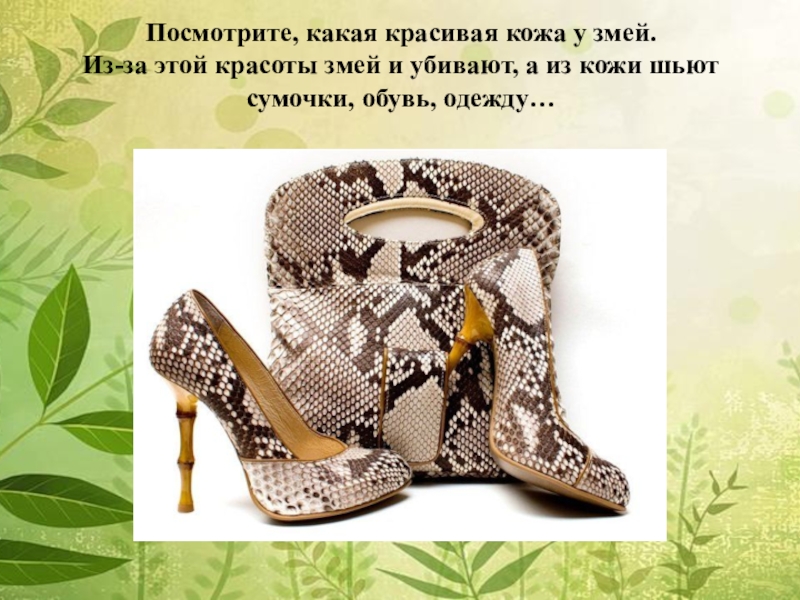 Слайд 16Посмотрите, какая красивая кожа у змей.