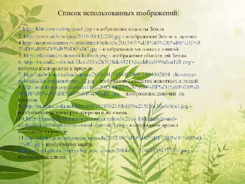 Слайд 24Список использованных изображений:
