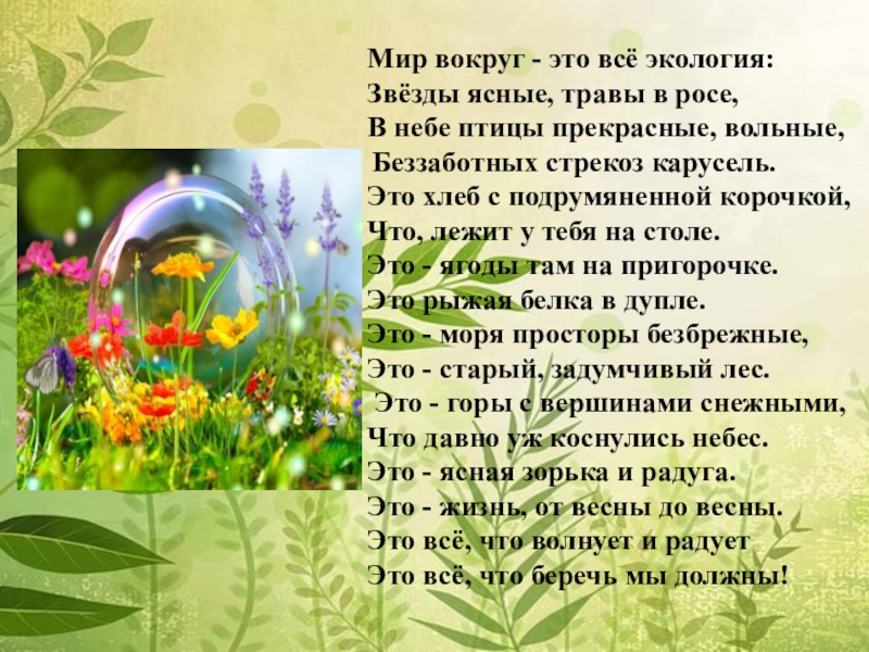 Слайд 22Мир вокруг - это всё экология: