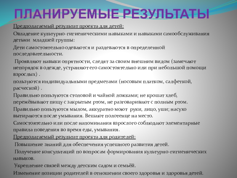 Привлекать родителей к соблюдению и развитию навыков личной гигиены дома.
