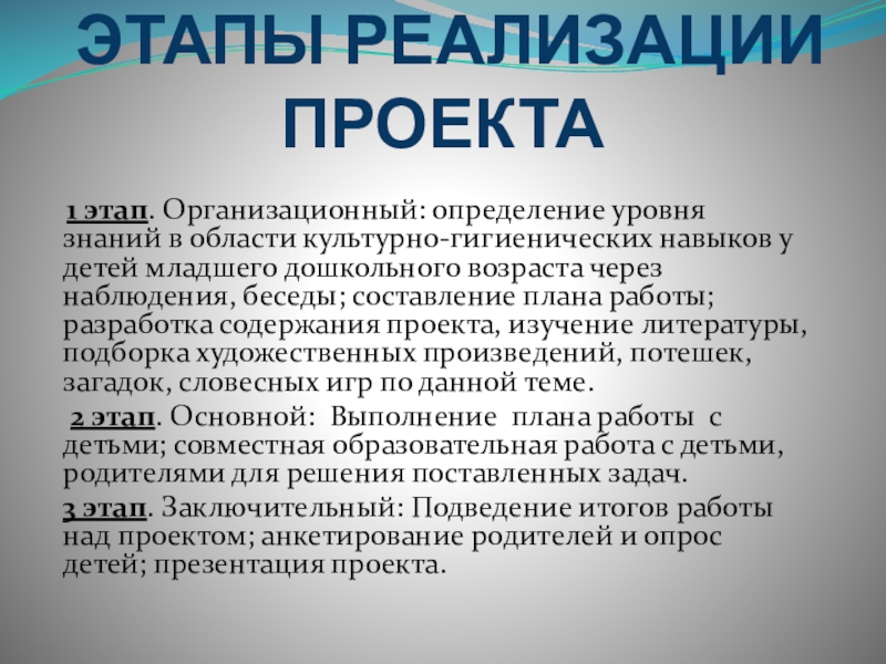 ЭТАПЫ РЕАЛИЗАЦИИ ПРОЕКТА