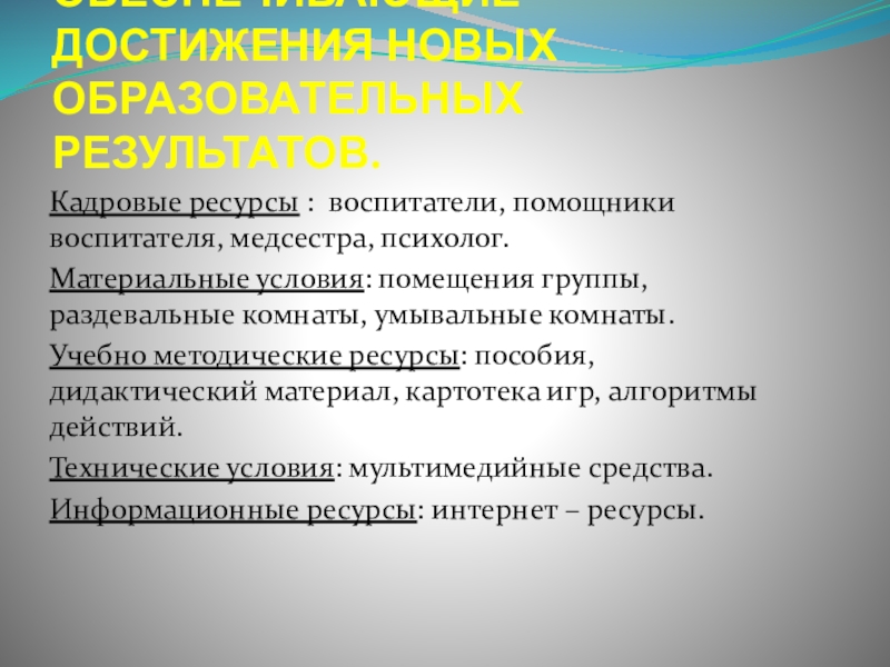 Слайд 9. УСЛОВИЯ, ОБЕСПЕЧИВАЮЩИЕ ДОСТИЖЕНИЯ НОВЫХ ОБРАЗОВАТЕЛЬНЫХ РЕЗУЛЬТАТОВ.